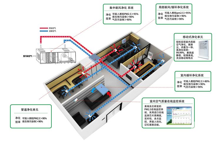 PM2.5室內空氣解決方案主要針對商用及民用建筑,涵蓋顆粒物、微生物污染物、氣態(tài)污染物的控制。從現(xiàn)場勘察測量、模擬數(shù)據(jù)、定制方案、制作樣板間、專業(yè)施工、售后服務等幾個方面,強調交鑰匙工程,確保客戶能享受到最好的產品、最好的設計和服務。遵循節(jié)能環(huán)保理念,設計出將物理吸附與靜電過濾技術相結合的創(chuàng)新產品,并且多項發(fā)明專利,產品系列齊全,滿足各種空調系統(tǒng)及空氣凈化的定制需求,為專業(yè)的系統(tǒng)方案解決及維護供應商。