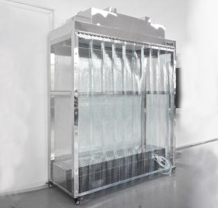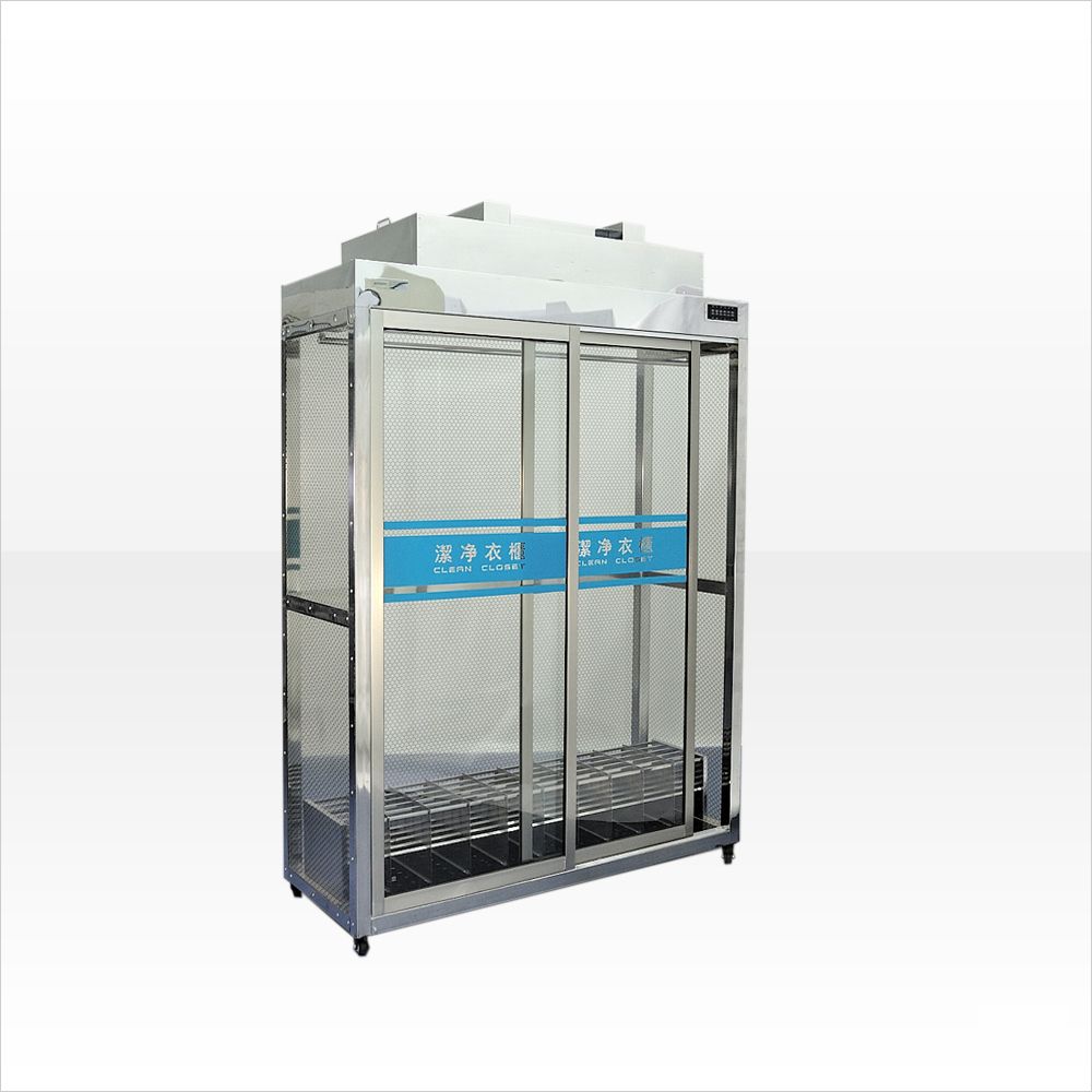 潔凈衣柜是一種通用性較強的局部凈化設備,主要用于懸掛無塵服和存放無塵鞋,保持無塵服和無塵鞋的潔凈,防止被外界空氣再度污染,確保工作區(qū)潔凈度和風速始終處于理想狀態(tài)。 材料以不銹鋼方通作為框架。采用風機濾網(wǎng)組FFU送風,四周用亞克力板或防靜電簾,頂部采用密封盲板,形成一個密封區(qū),內(nèi)部凈化級別可達100-10000級。